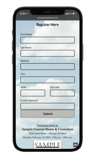 DRS Digital Registry Systems is one of the very first companies to provide an easy yet elegant product that enables anyone of any age to register for ANYTHING! Seen here is a basic funeral home register book that would require handwriting, which most of the time can be hard to decipher. After seeing countless families struggle in their time of need, DRS produced our Digital Registry System.
